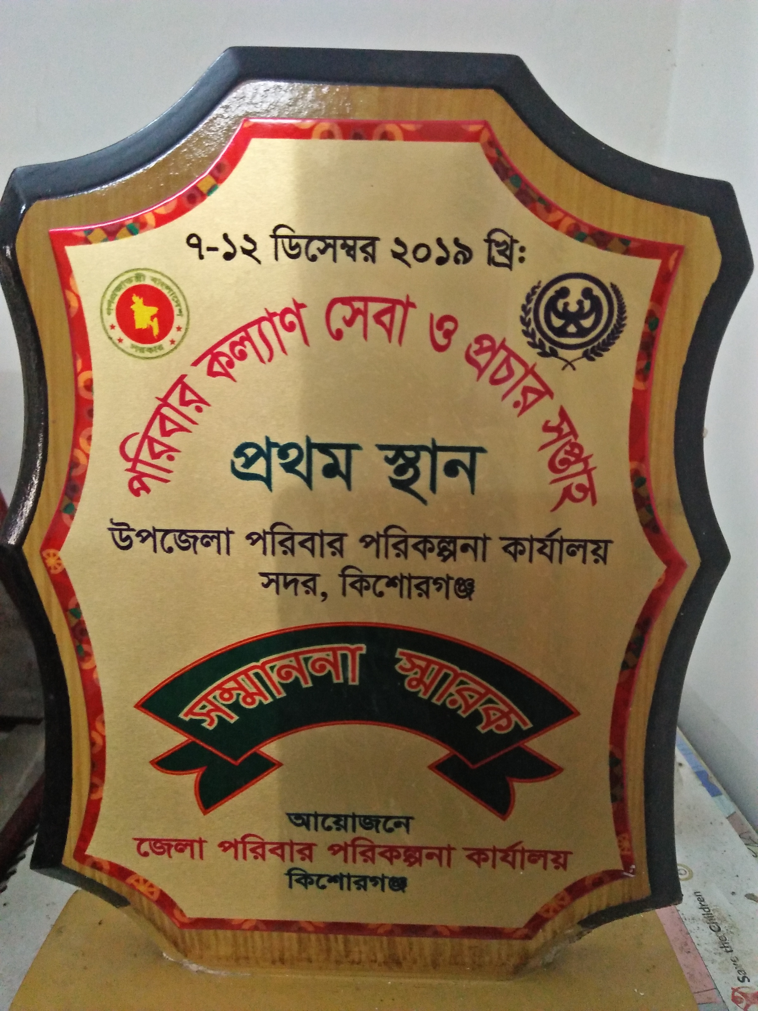 ⇛ ৭ ডিসেম্বর ২০১৯-১২ ডিসেম্বর ২০১৯ খ্রিঃ পর্যন্ত পরিবার কল্যাণ সেবা ও প্রচার সপ্তাহে কিশোরগঞ্জ জেলায় প্রথম স্থান অর্জন।